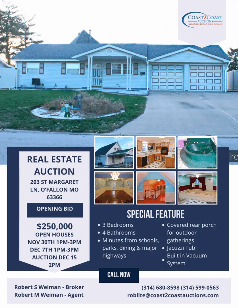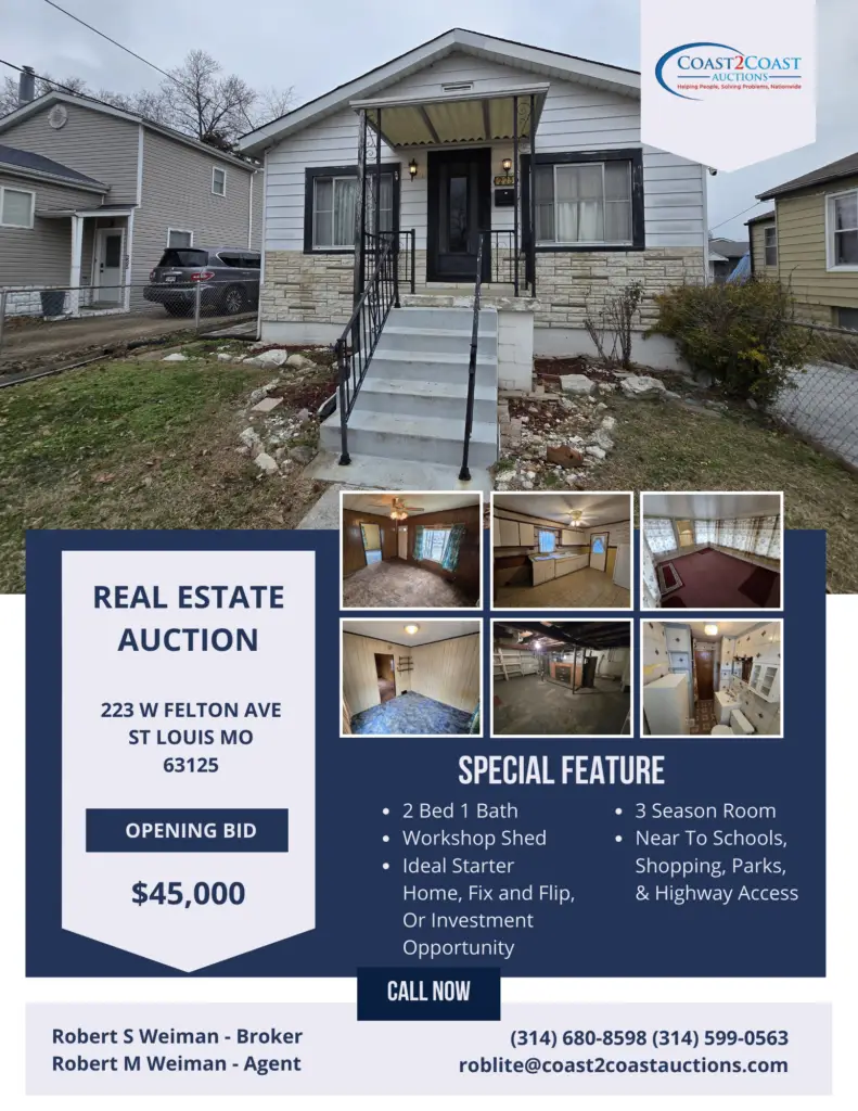 Founded in St. Louis, Coast2Coast Auctions has been solving problems through auctions for over 20 years. Whether you’re liquidating an estate, selling collectibles, or moving real estate fast—we’re here to help.